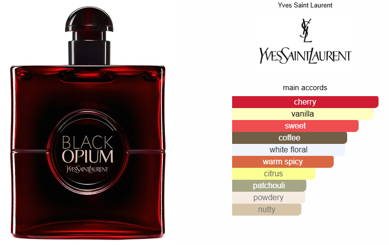 Black Opium Over Red by Yves Saint Laurent is a Floral Fruity Gourmand fragrance for women. This is a new fragrance. Black Opium Over Red was launched in 2024. Black Opium Over Red was created by Honorine Blanc, Nathalie Lorson, Marie Salamagne and Olivier Cresp. Top notes are Cherry and Green Mandarin; middle notes are Jasmine, Orange Blossom and Black Tea; base notes are Madagascar Vanilla, Coffee and Indonesian Patchouli Leaf.