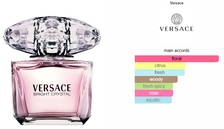 Bright Crystal by Versace is a Floral Fruity fragrance for women. Bright Crystal was launched in 2006. The nose behind this fragrance is Alberto Morillas. Top notes are Yuzu, Pomegranate and Ice; middle notes are Peony, Lotus and Magnolia; base notes are Musk, Mahogany and Amber.