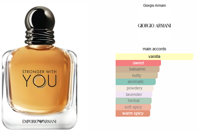 Emporio Armani Stronger With You by Giorgio Armani is a Aromatic Fougere fragrance for men. Emporio Armani Stronger With You was launched in 2017. The nose behind this fragrance is Cecile Matton. Top notes are Chestnut and Sugar; middle notes are Sage and Lavender; base notes are Vanilla and Smoke.