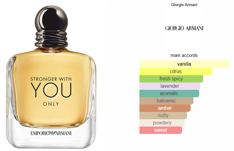 Emporio Armani Stronger With You Only by Giorgio Armani is a fragrance for men. This is a new fragrance. Emporio Armani Stronger With You Only was launched in 2022. Top note is Grapefruit; middle notes are Lavender and Geranium; base notes are Vanilla, Chestnut and Labdanum.
