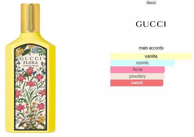 Flora Gorgeous Orchid by Gucci is a Floral Fruity Gourmand fragrance for women. This is a new fragrance. Flora Gorgeous Orchid was launched in 2024. The nose behind this fragrance is Marie Salamagne. Top note is Vanilla; middle note is Vanilla Orchid; base note is Ozonic notes.