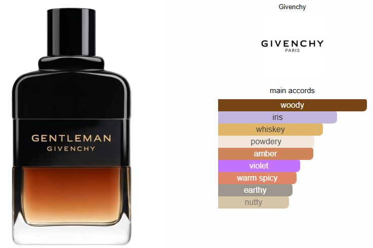 Gentleman Eau de Parfum Reserve Privée by Givenchy is a Oriental Vanilla fragrance for men. This is a new fragrance. Gentleman Eau de Parfum Reserve Privée was launched in 2022. Gentleman Eau de Parfum Reserve Privée was created by Nathalie Lorson and Olivier Cresp. Top note is Bergamot; middle notes are Iris and Chestnut; base notes are Whiskey, Woodsy Notes and Amber.