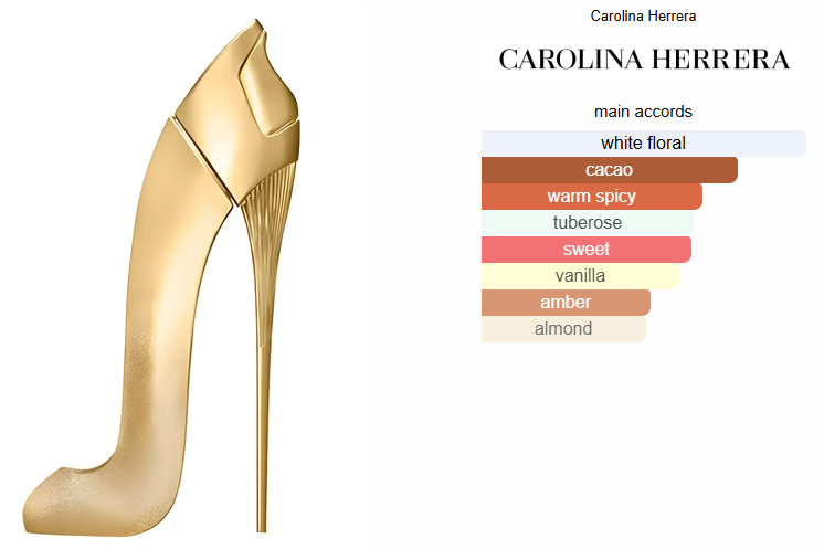 Good Girl Gold Fantasy by Carolina Herrera is a Oriental Floral fragrance for women. This is a new fragrance. Good Girl Gold Fantasy was launched in 2022. The nose behind this fragrance is Louise Turner. Top note is Almond; middle notes are Jasmine Sambac and Tuberose; base notes are Cacao and Tonka Bean.