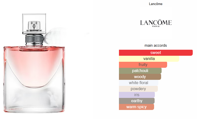 La Vie Est Belle by Lancôme is a Floral Fruity Gourmand fragrance for women. La Vie Est Belle was launched in 2012. La Vie Est Belle was created by Olivier Polge, Dominique Ropion and Anne Flipo. Top notes are Black Currant and Pear; middle notes are Iris, Jasmine and Orange Blossom; base notes are Praline, Vanilla, Patchouli and Tonka Bean.