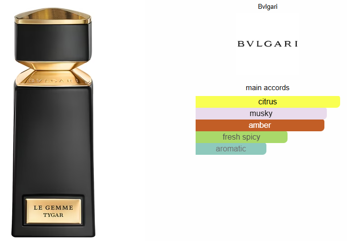 Tygar by Bvlgari is a Citrus Aromatic fragrance for men. Tygar was launched in 2016. The nose behind this fragrance is Jacques Cavallier Belletrud. Top note is Grapefruit; middle notes are Ginger and Ambrette; base notes are Ambroxan, Musk, Vetiver and Patchouli.