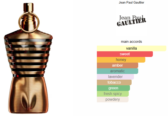 Le Male Elixir by Jean Paul Gaultier is a Oriental Fougere fragrance for men. This is a new fragrance. Le Male Elixir was launched in 2023. The nose behind this fragrance is Quentin Bisch. Top notes are Lavender and Mint; middle notes are Vanilla and Benzoin; base notes are Honey, Tonka Bean and Tobacco.