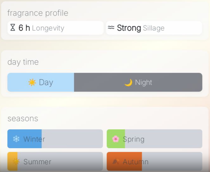 Top notes: bergamot, clary sage, pepermint, cardamom. Heart: apple, fir, cedar, lavender, violet. Base: vetiver, black vanilla, Akigalawood®, patchouli, musk.