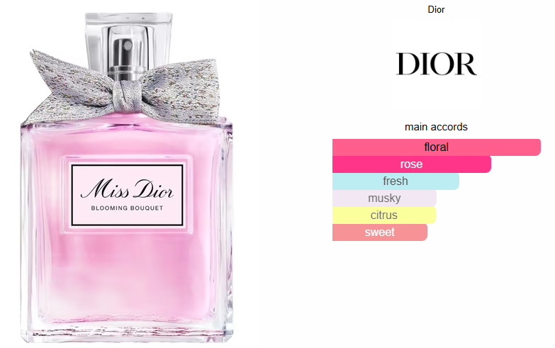 Miss Dior Blooming Bouquet (2023) by Dior is a Floral fragrance for women. This is a new fragrance. Miss Dior Blooming Bouquet (2023) was launched in 2023. Top notes are Sweet Pea and Bergamot; middle notes are Peony and Damask Rose; base note is White Musk.