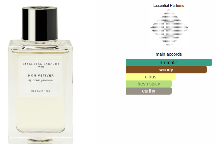 Mon Vetiver by Essential Parfums is a Woody Aromatic fragrance for women and men. Mon Vetiver was launched in 2018. The nose behind this fragrance is Bruno Jovanovic.