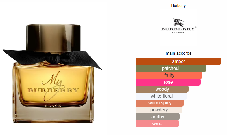 My Burberry Black by Burberry is a Oriental Floral fragrance for women. My Burberry Black was launched in 2016. The nose behind this fragrance is Francis Kurkdjian. Top note is Jasmine; middle notes are Peach and Rose; base notes are Amber and Patchouli.