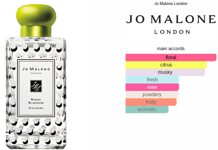 Nashi Blossom by Jo Malone London is a Floral fragrance for women and men. Nashi Blossom was launched in 2016. The nose behind this fragrance is Fabrice Pellegrin. Top note is Lemon; middle notes are Pear Blossom and Rose; base note is White Musk.