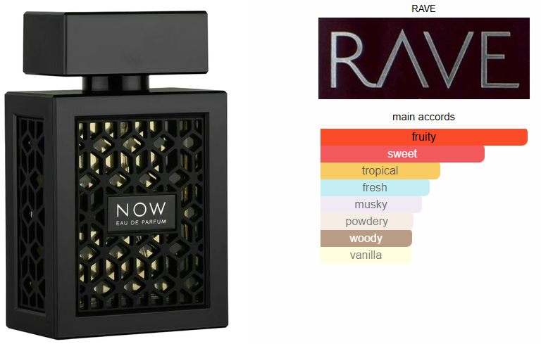 Now by RAVE is a Woody Aromatic fragrance for men. This is a new fragrance. Now was launched in 2022. Top notes are Pineapple, Bergamot, Apple and Black Currant; middle notes are Birch, Patchouli, Moroccan Jasmine and Rose; base notes are Musk, Vanilla, Oakmoss and Ambergris.