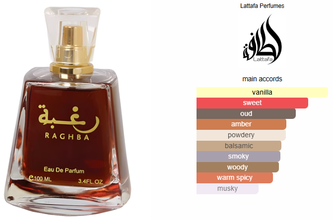 Raghba by Lattafa Perfumes is a Oriental Vanilla fragrance for women and men.