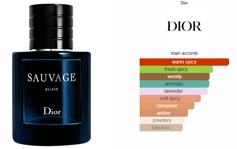 Sauvage Elixir by Dior is a Aromatic fragrance for men. Sauvage Elixir was launched in 2021. The nose behind this fragrance is François Demachy. Top notes are Nutmeg, Cinnamon, Cardamom and Grapefruit; middle note is Lavender; base notes are Licorice, Sandalwood, Amber, Patchouli and Haitian Vetiver.
