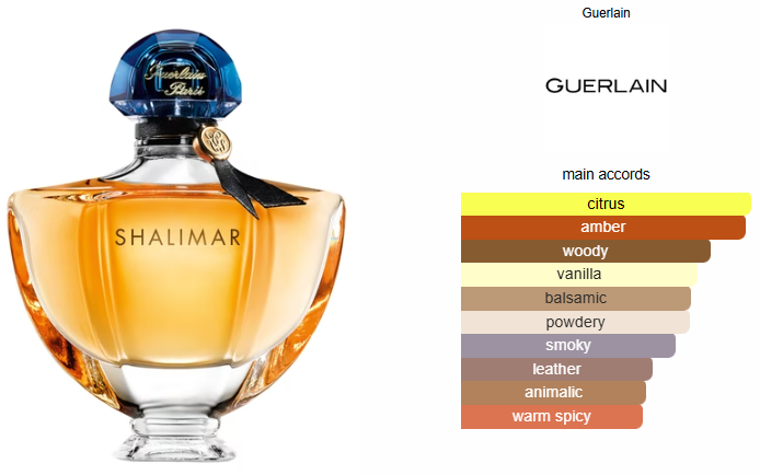 Shalimar Eau de Parfum by Guerlain is a Oriental Spicy fragrance for women. Shalimar Eau de Parfum was launched in 1990. The nose behind this fragrance is Jacques Guerlain. Top notes are Citruses, Bergamot, Lemon, Cedar and Mandarin Orange; middle notes are Iris, Patchouli, Vetiver, Jasmine and Rose; base notes are Vanilla, Incense, Leather, Opoponax, Civet, Sandalwood, Tonka Bean and Musk.