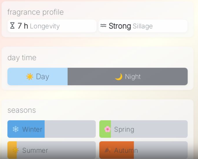 The composition opens with a blend of fresh citruses and warm spicy notes. There are mandarin oil, neroli, saffron, cardamom and nutmeg at the beginning. Its heart contains accord of Indian kulfi dessert, traditionally made of Himalayan snow and pistachio, transmitted with mastic accord. A bouquet of rose absolute, jasmine and orange blossom is also placed in the heart. Hot amber in the base is subtly balanced with woody accords of sandalwood and milky- sweet vanilla.