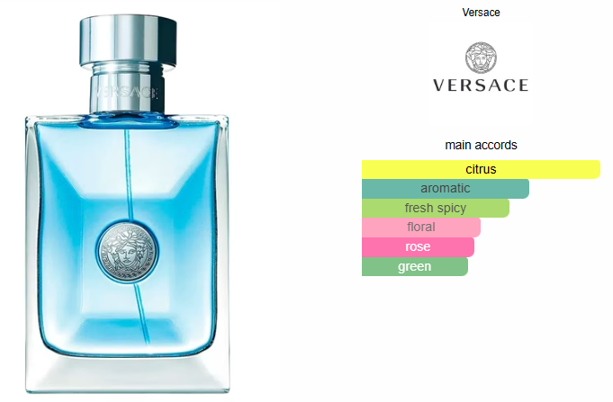 Versace Pour Homme by Versace is a Aromatic Fougere fragrance for men. Versace Pour Homme was launched in 2008. The nose behind this fragrance is Alberto Morillas. Top notes are Lemon, Bergamot, Neroli and Rose de Mai; middle notes are Hyacinth, Cedar, Clary Sage and Geranium; base notes are Musk, Tonka Bean and Amber.